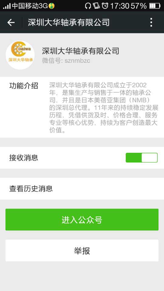 深圳大華軸承有限公司企業微信服務號正式開通,歡迎各位新老客戶進行關注!我們會獻上最優質的軸承信息